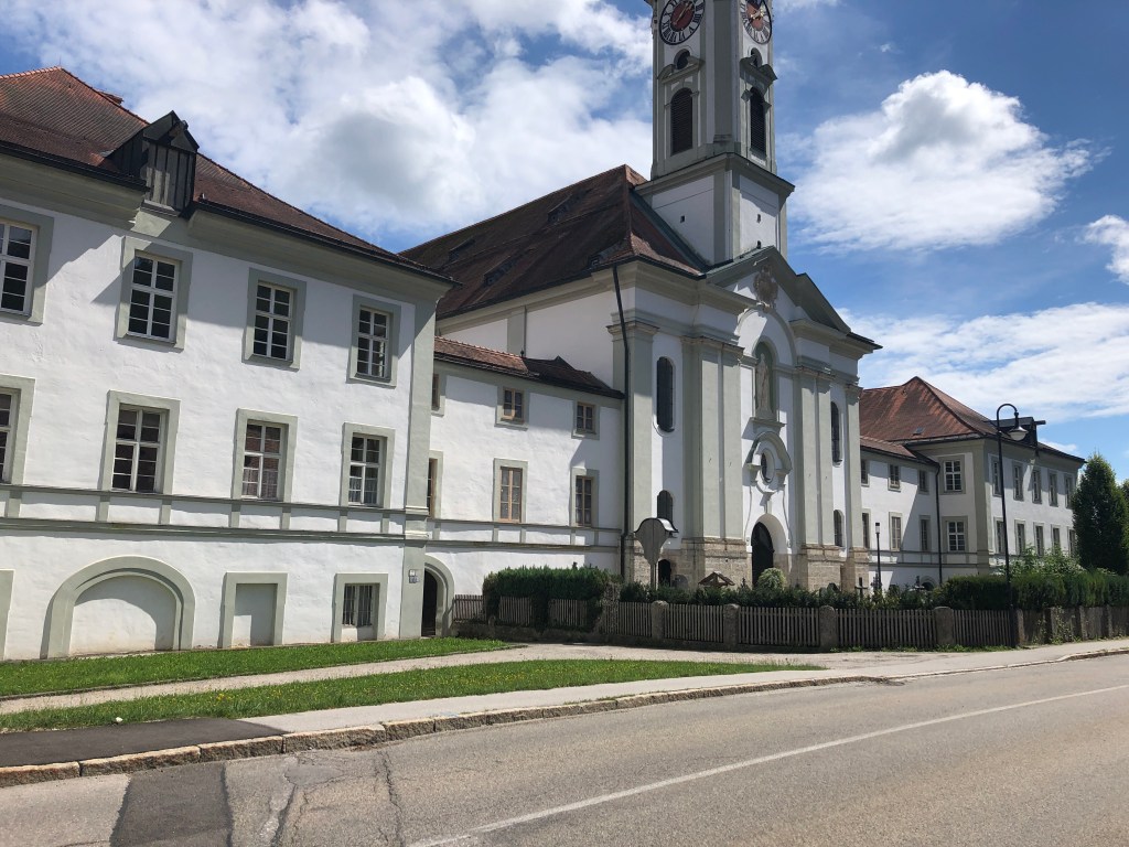 Aber nach 1-2 Kilometern hab ich wieder Vorsprung und kann in Kloster Schäftlarn endlich eine richtige Pause einlegen. Hier sind schon ca. 2/3 der Tagesetappe geschafft.