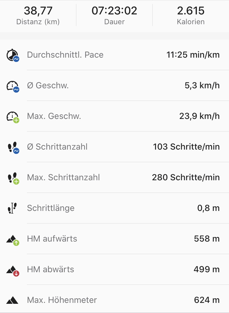 Aber, dass war doch etwas länger, als erwartet. Und die Socken qualmen mächtig. Und mit dem Gewicht vom Rucksack muss ich mir noch ein Feintuning überlegen. Die ca. 16-17 kg heute, bei über 38km Strecke waren schon heftig. Zumindest wenn es dann in einigen Tagen Hochalpin geht. Auch wenn ich vermute, dass ich bis dahin körperlich bestimmt 2-3 Kilo verloren haben werde.