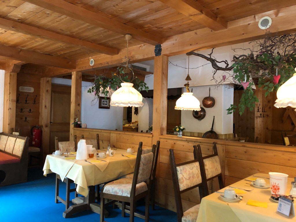 Nach einer recht guten Nacht (insgesamt schlafe ich m. E. für die Anstrengungen immer recht wenig) und einem großen Frühstück starte ich. Selbst am Lampenschirm lässt sich erkennen, dass ich mich im Gasthof zur Post befinde.