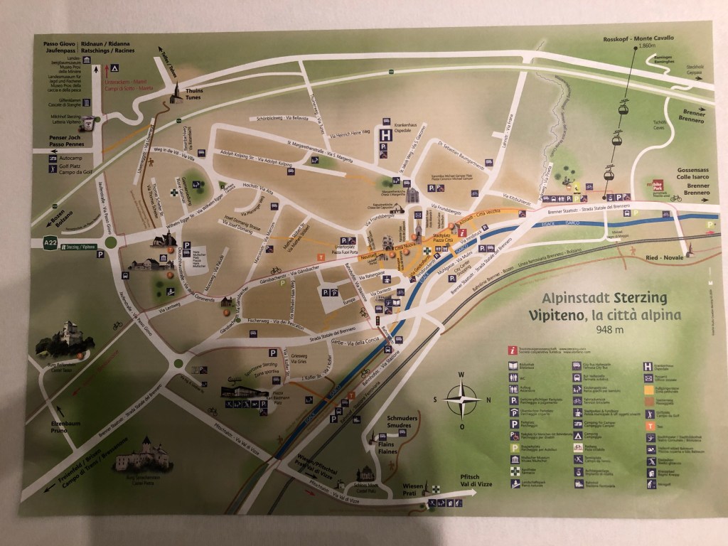 Im Hotel Maibad (meine Bleibe in Sterzing – gut, aber günstig) bekomme ich eine erste Übersicht über den Ort.