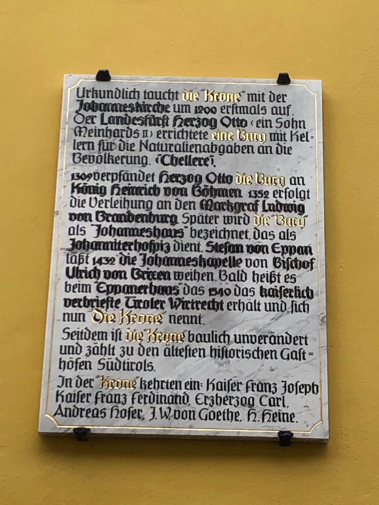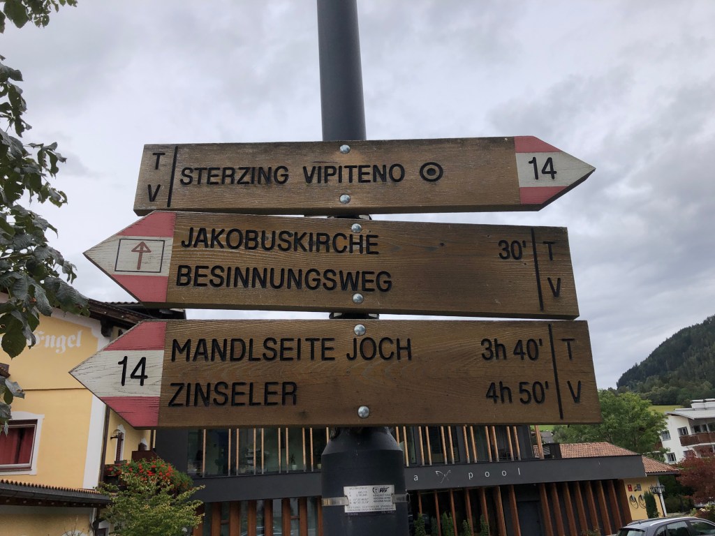 Da ich die Unterkunft für die nächste Etappe schon gebucht hatte und jetzt einen Tag früher als erwartet in Sterzing bin, ist heute ein bisschen Pause. Da ich gut und lang geschlafen habe (mal wieder über 7 Stunden!), werde ich den Tag aber auch noch dazu nutzen, mir Sterzing ein wenig anzuschauen.