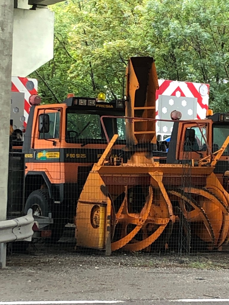 Hier warten schon die Schneefräsen auf Ihren nächsten Einsatz. Der wird sicherlich schon in einigen Wochen nötig werden.