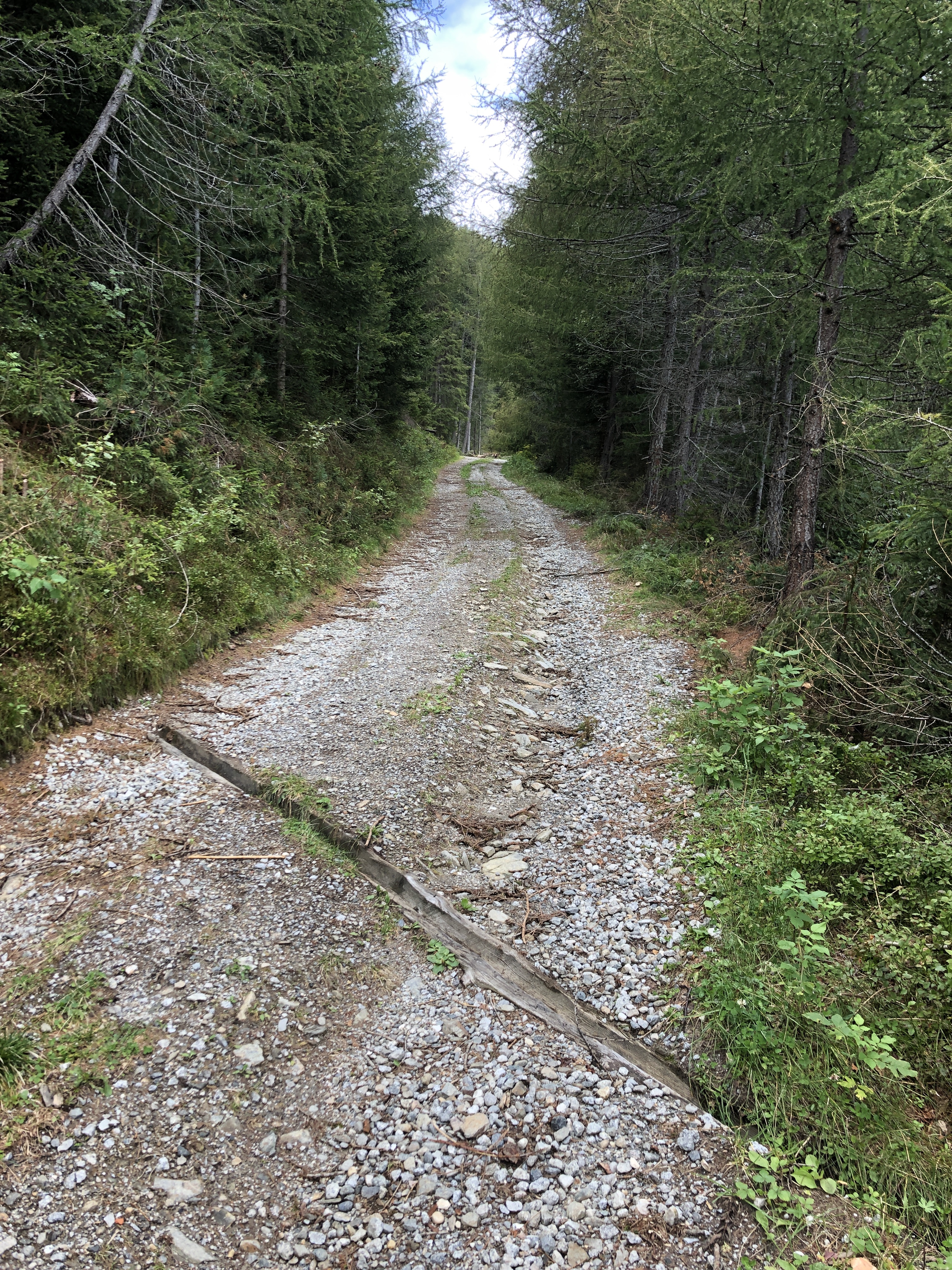 Später kreuze ich die Straße und bin dann weiter auf einem Forstweg unterwegs. Aber ohne Kompromiss geht’s hoch.