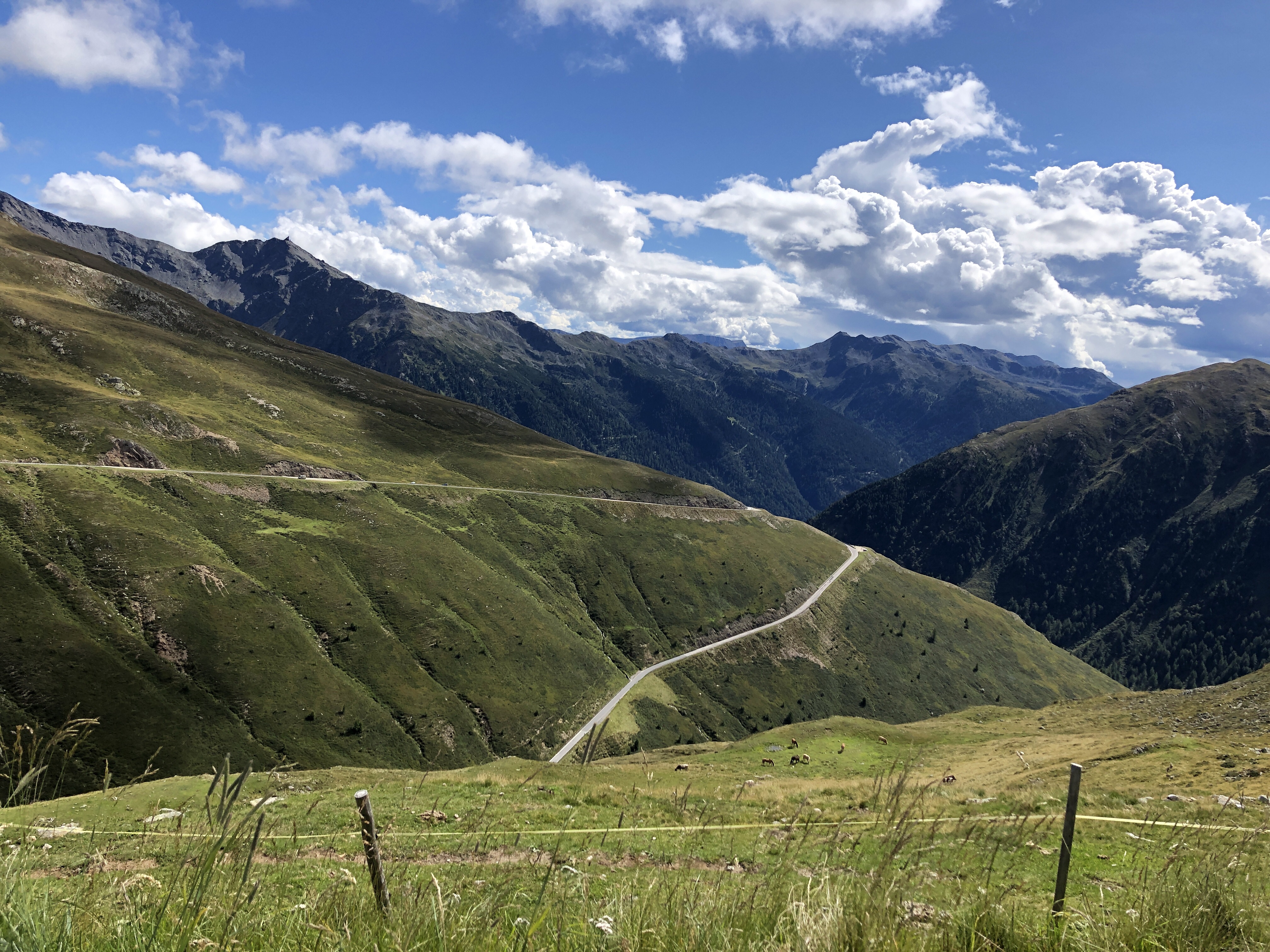 Nach einer kurzen Pause kann ich mein Etappenziel schon sehen. Die Straße zum Penser Joch ist unter lautem Motorengeräusch in der Hand der Biker.