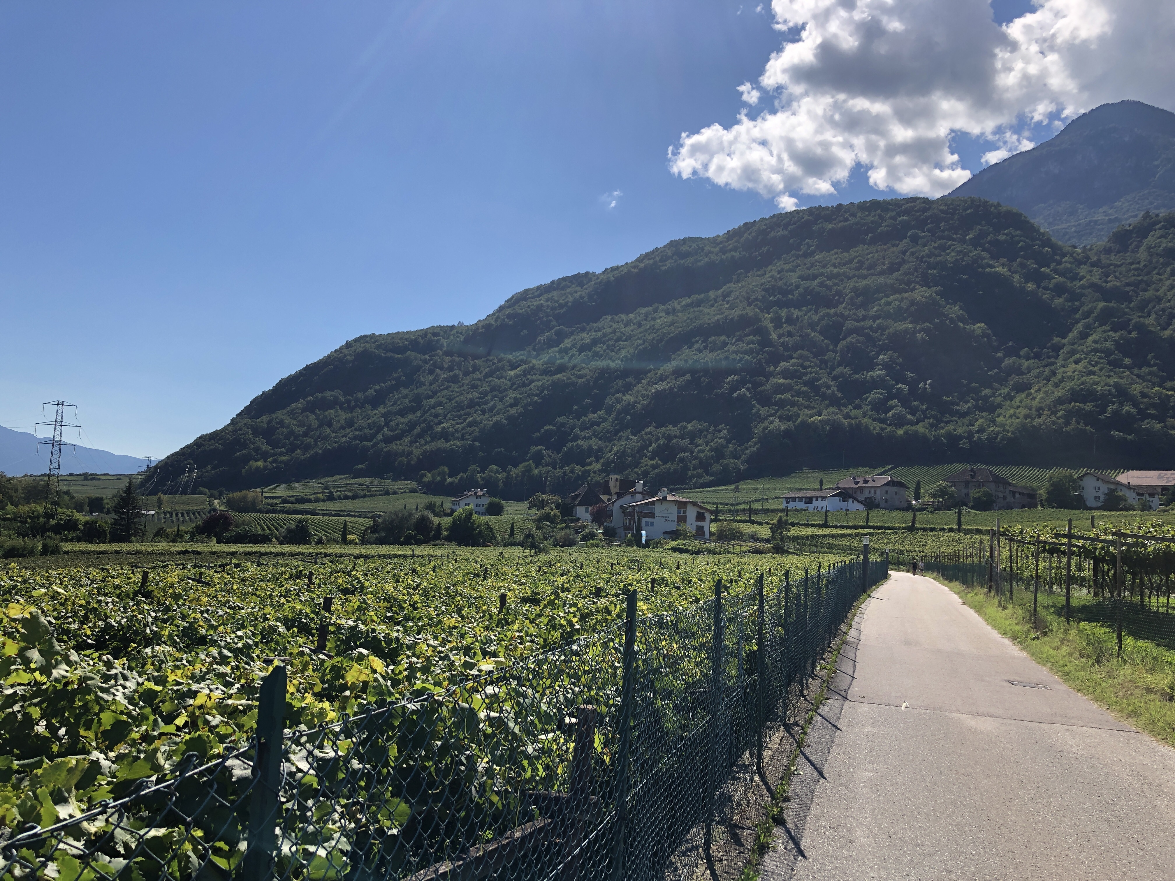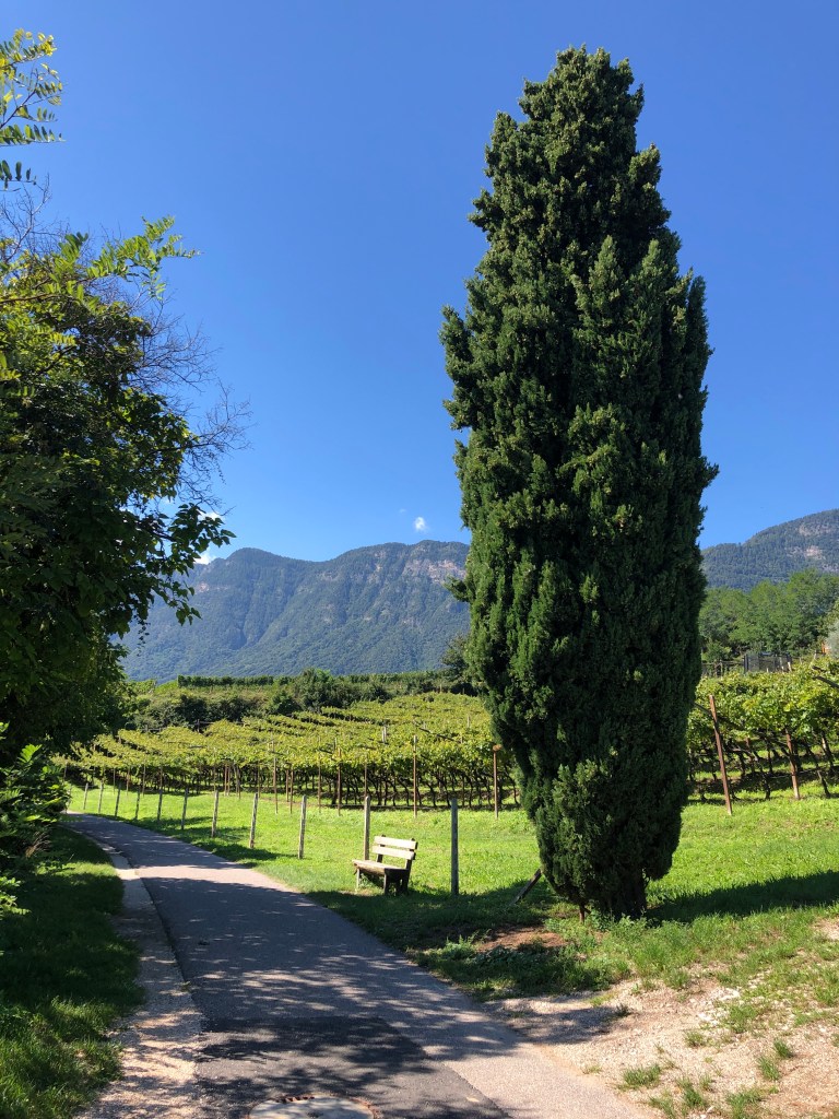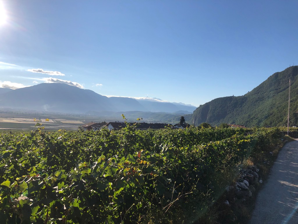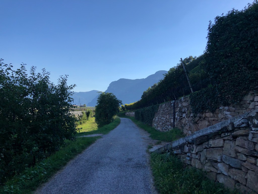 Richtung Kaltern nutze ich jetzt den Fuß-/Radweg. In dieser Region sind wieder deutlich mehr Tesla Räder unterwegs. Aber auch Rennräder ziehen hier Ihre Bahnen.