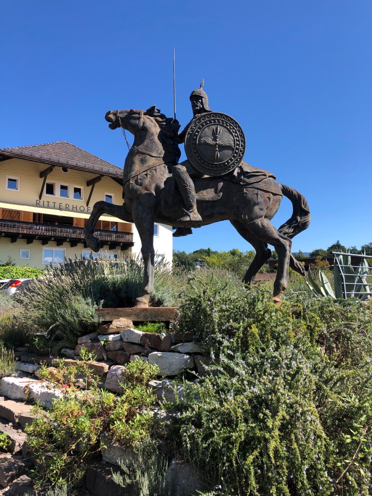 Am Ortseingang von Kaltern steht ein „Eisenschwein“.