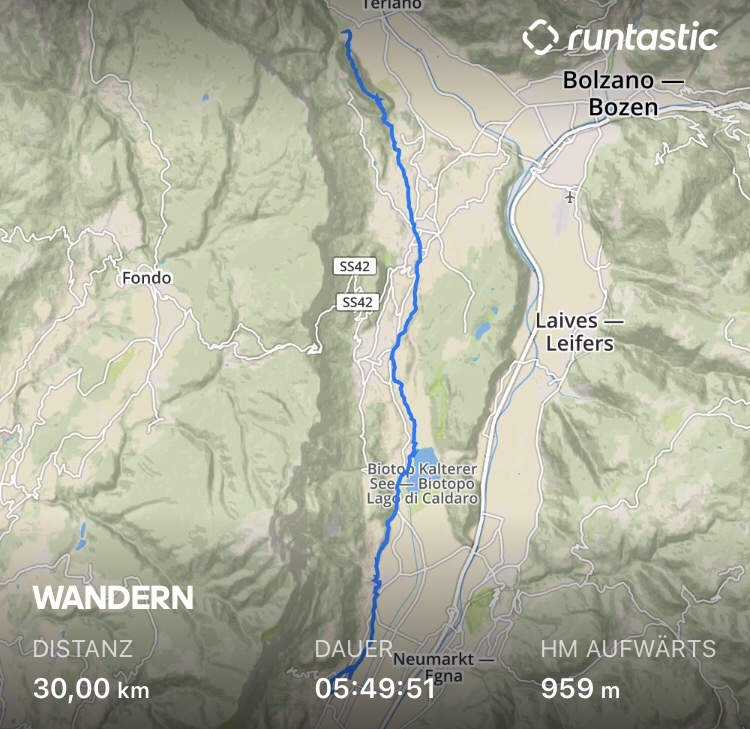 So, heute geht’s, wie gestern , ordentlich auf Kilometer! Auch wieder nicht sooo viel Höhenmeter, aber ein bisschen Zeit brauch ich ja auch für ein paar Fotos. Vor allem, wo die Etappe ja auch am Kalterer See vorbei geht! 😊 Mal schauen, ob der Name hält, was er verspricht.