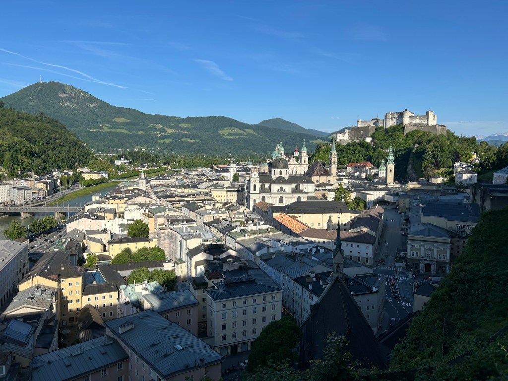 Die Zugfahrt verlief relativ planmäßig und ich bin bei Mega Wetter in Salzburg angekommen und hab mich direkt rauf gemacht, zum Mönchsberg. Die Rezeption ist personell nur bis 18:00 Uhr besetzt und wenn ich später ankomme, müsste ich mir telefonisch einen Code zum Einchecken erfragen. Aber ich bin rechtzeitig da. Das Gästehaus ist wirklich schön und das Zimmer größer als gebucht und auch sehr sauber! Kurz unter die Dusche noch und dann darf es kulinarisch werden😬.
