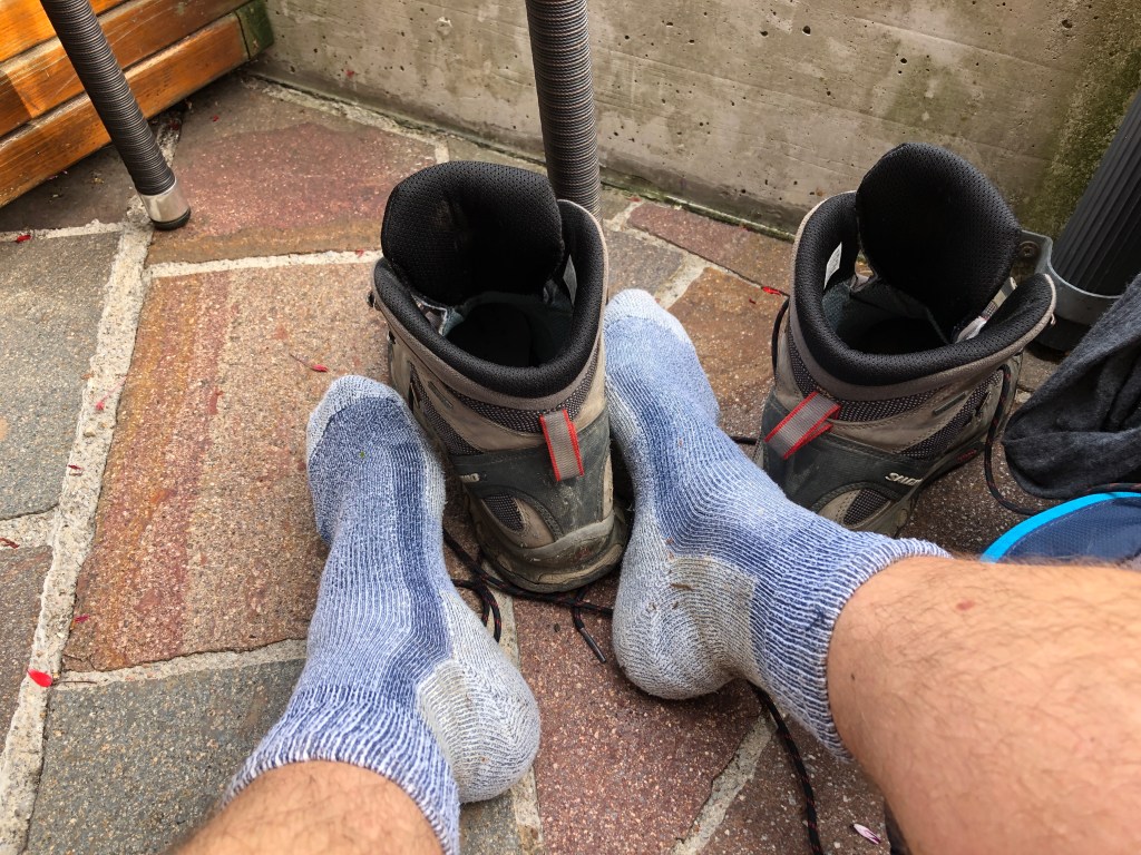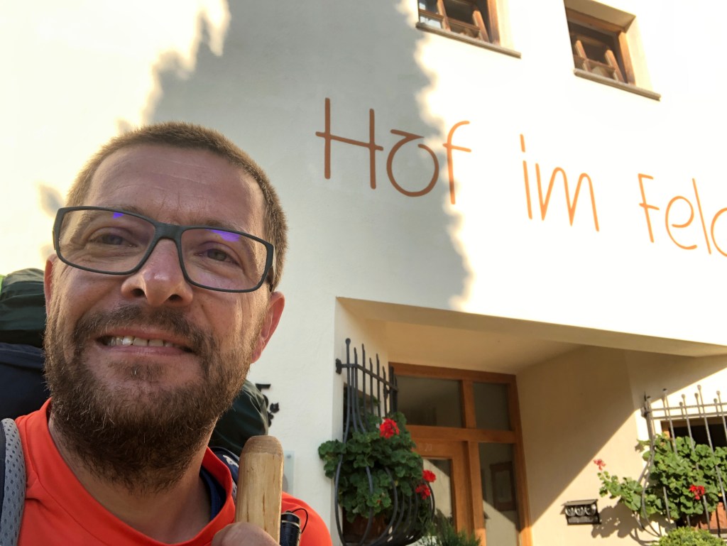 Ich hab gestern das mögliche Essen im Hotel wahrgenommen. War gar nicht schlecht und auch nicht teuer. Und so brauchte ich auch nicht mehr los. Und wenn die Leute mitbekommen, dass ich zu Fuß da bin (meist fragt einer wegen dem Rucksack oder wegen Kalle), gib es oft auch noch echt tolle Gespräche. Gestern zum Beispiel mit einem Motorrad Touristen. Er meinte dann irgendwann OK, die 16kg, die ich auf dem Rücken schleppe, hätte er auch mehr drauf. Aber vorne. 😂 Aber so weit laufen wollte er damit sicherlich nicht. 😊
