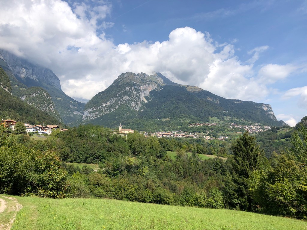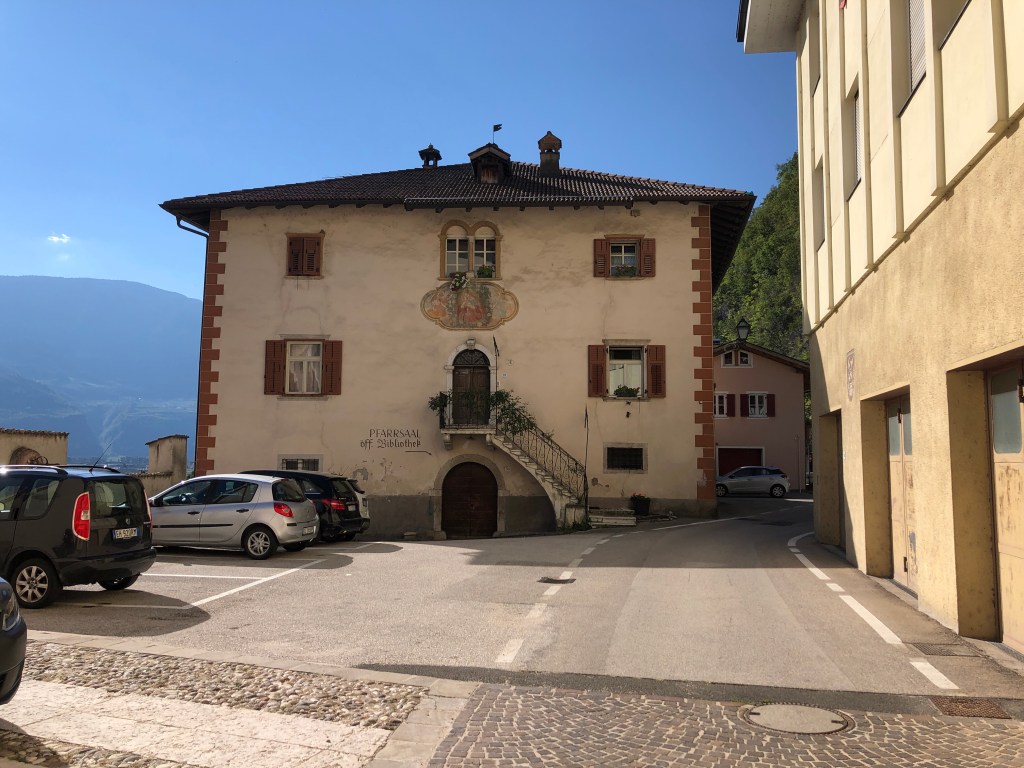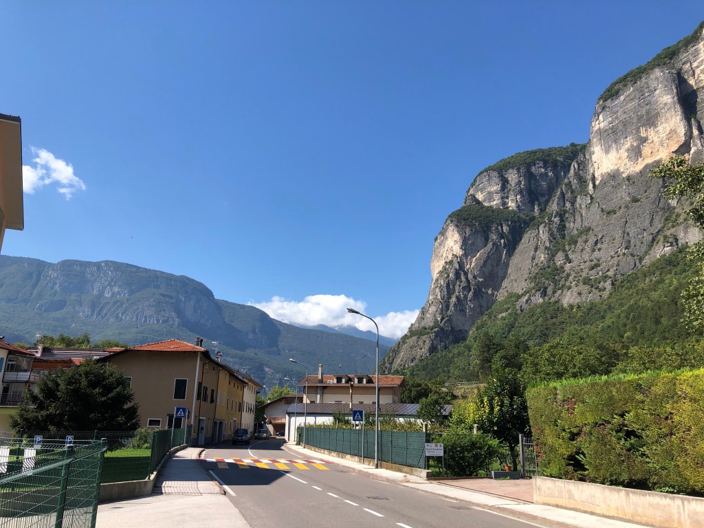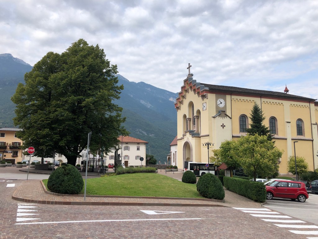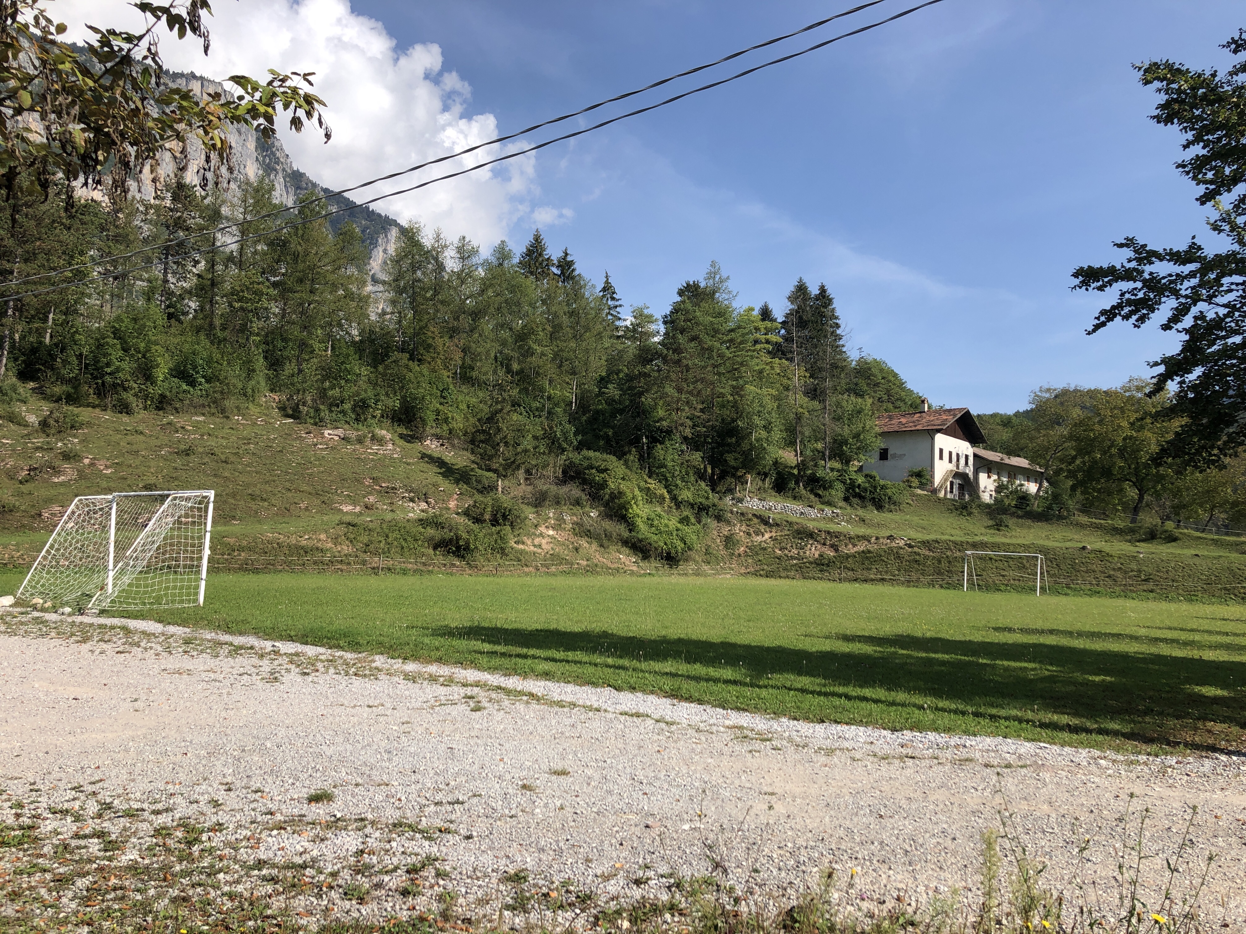 Mitten zwischen ein paar Häuschen, nicht wirklich eine Ortschaft, ein Fußballplatz. Vielleicht ist Renzo Rossi hier schon in frühen Jahren über‘n Platz gegrätscht.😜 (Hihi, jetzt googeln wieder welche – gab’s den wirklich? 😂 Ja! Stammt aus Bozen! 😊)
