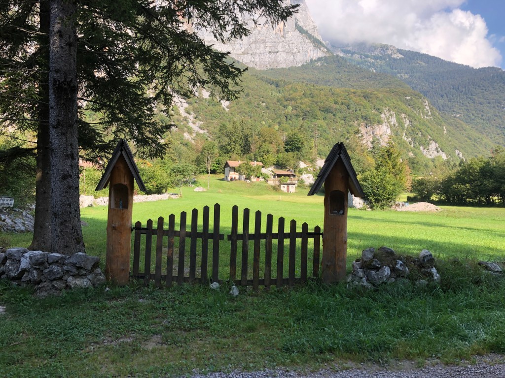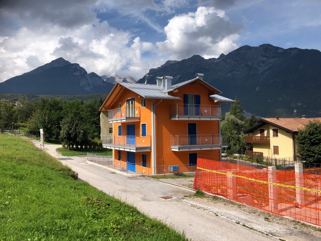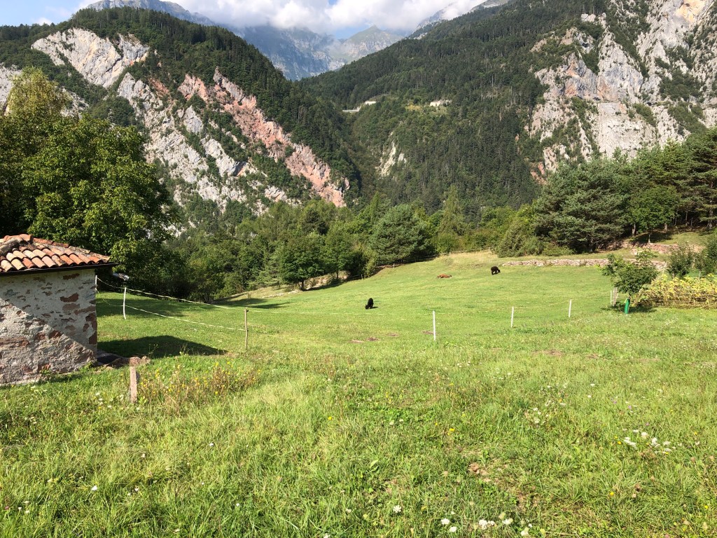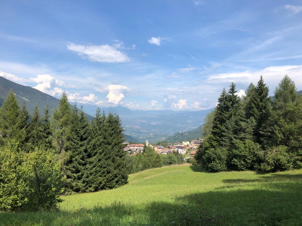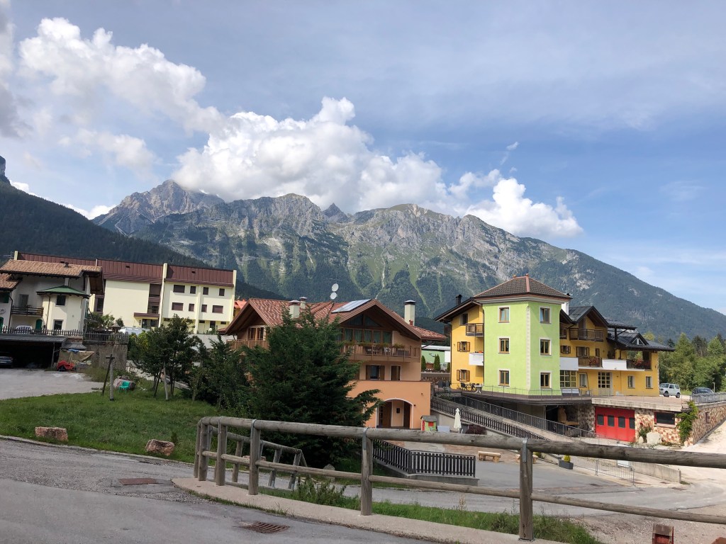 Mitten zwischen ein paar Häuschen, nicht wirklich eine Ortschaft, ein Fußballplatz. Vielleicht ist Renzo Rossi hier schon in frühen Jahren über‘n Platz gegrätscht.😜 (Hihi, jetzt googeln wieder welche – gab’s den wirklich? 😂 Ja! Stammt aus Bozen! 😊)
