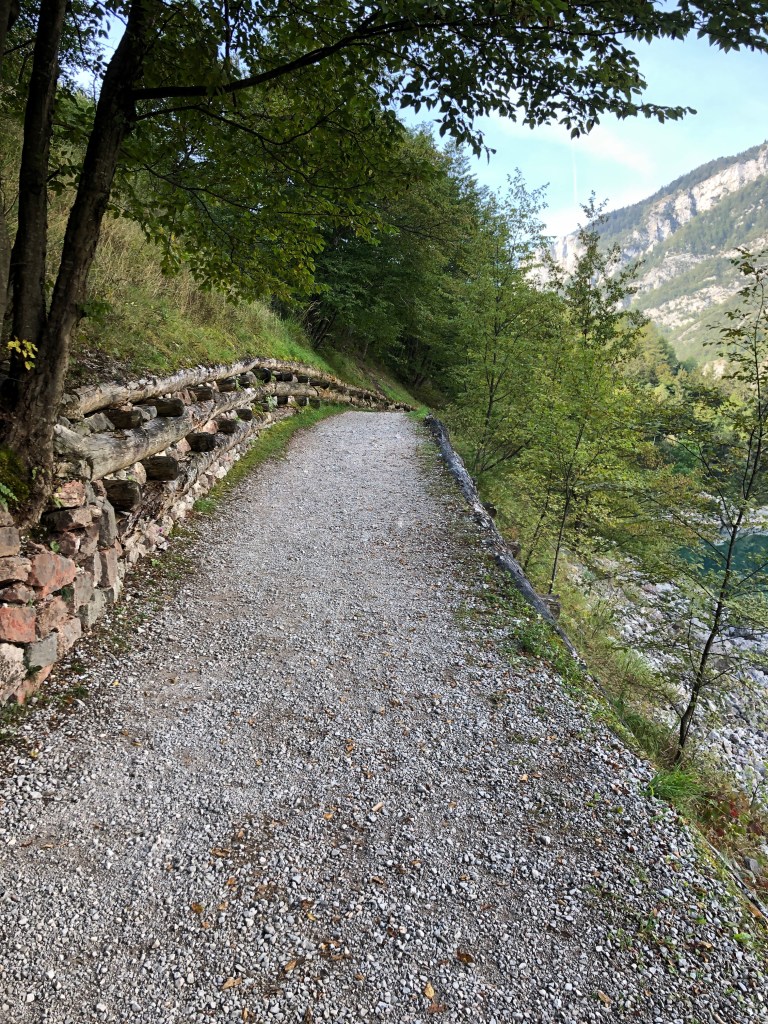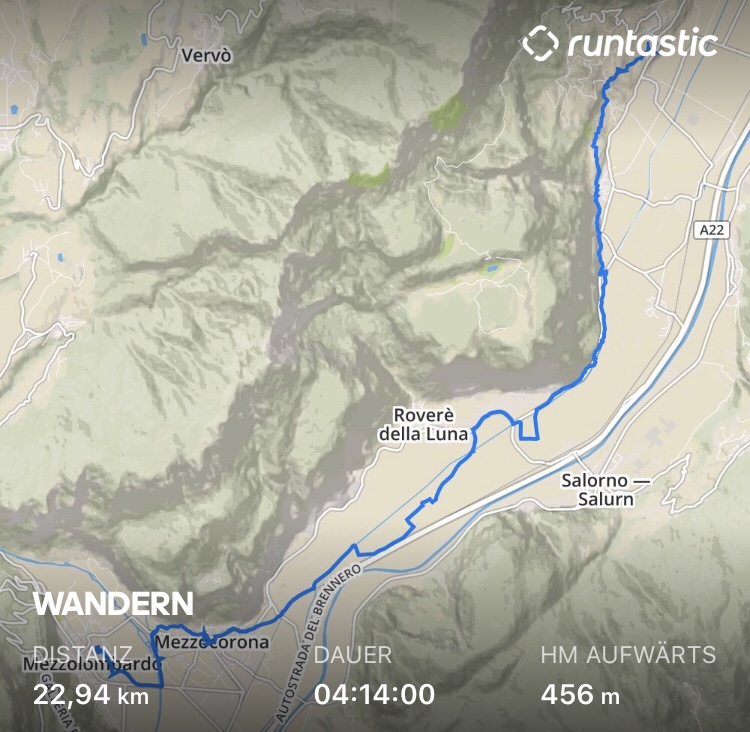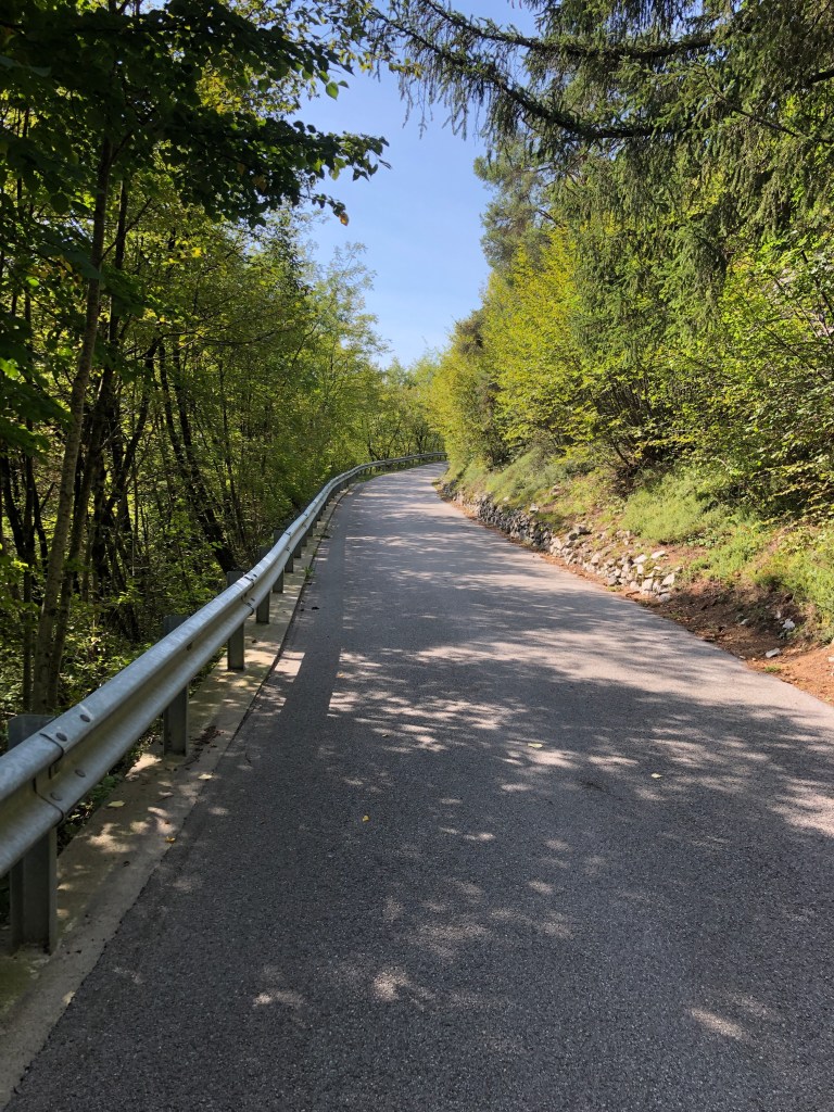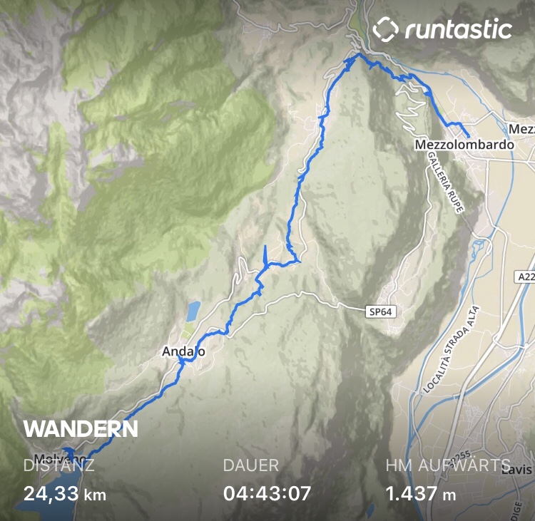 Ich gehe von Molveno östlich am See entlang (Ja! 🙄 Also in Laufrichtung links. Ich lauf von oben nach unten!). Das macht heute schon mal die ersten 6km aus.