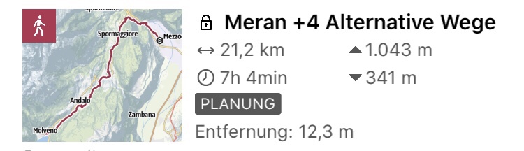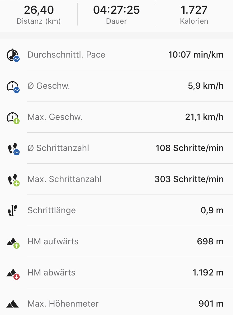 Nach meiner „Streckenkontrolle“ gestern Abend, für heute, hab ich noch 1-2 kleinere Korrekturen am Plan vorgenommen. Hat sich gelohnt. Die ganze Strecke lässt sich gut gehen.