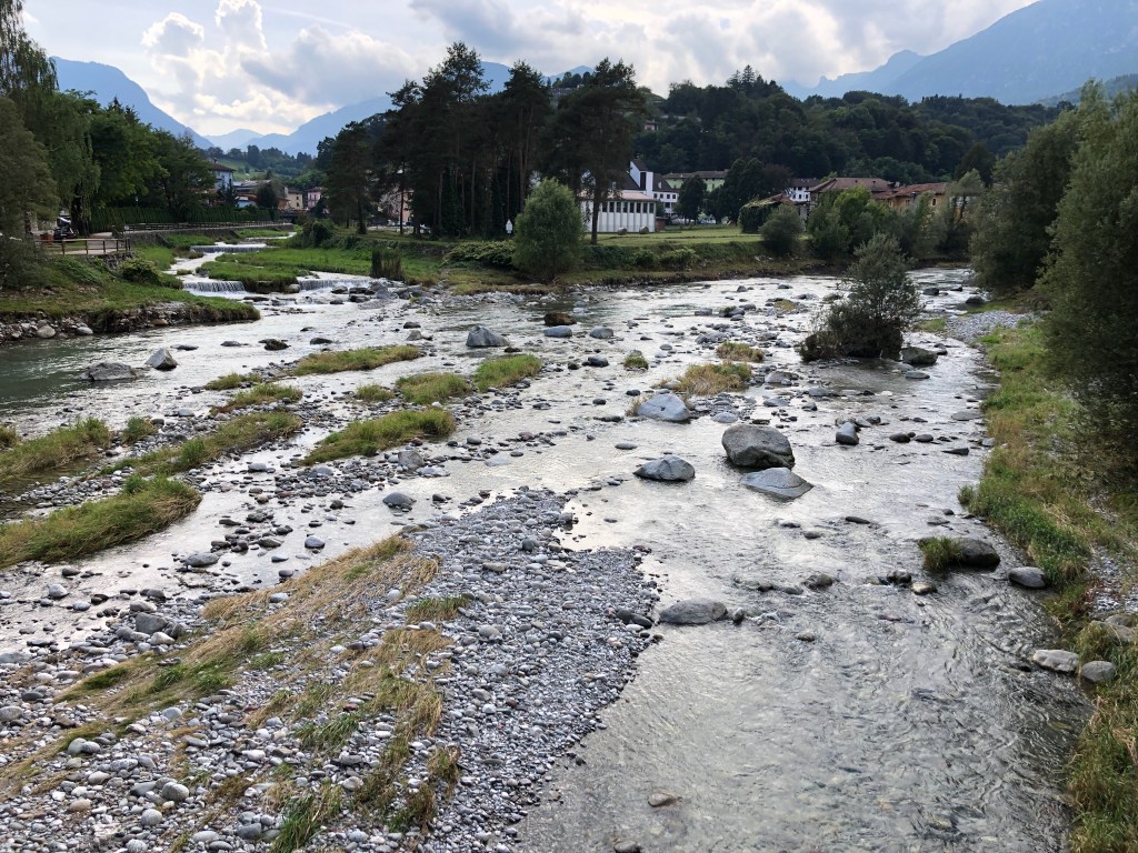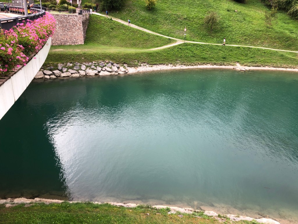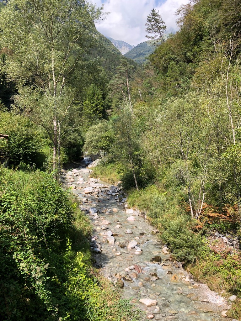 In Terme di Comano sieht es stark nach Kurort aus. Großzügige Parkanlagen, frisch gemäht, entspanntes Flüßchen. (Aber wohl manchmal auch Flutgebiet.🤨)