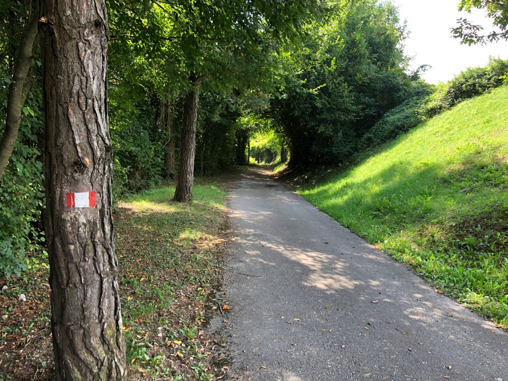 Bei immer so 20-25 Grad, in der Sonne je nach Lage auch mal etwas wärmer, lässt es sich gut aushalten heute. Nachdem ich meine Käse-Schinken Semmel schon vor ein paar Kilometern verdrückt habe, wäre eine Getränke Pause jetzt so langsam angebracht. Mein Wasser ist schon recht warm.