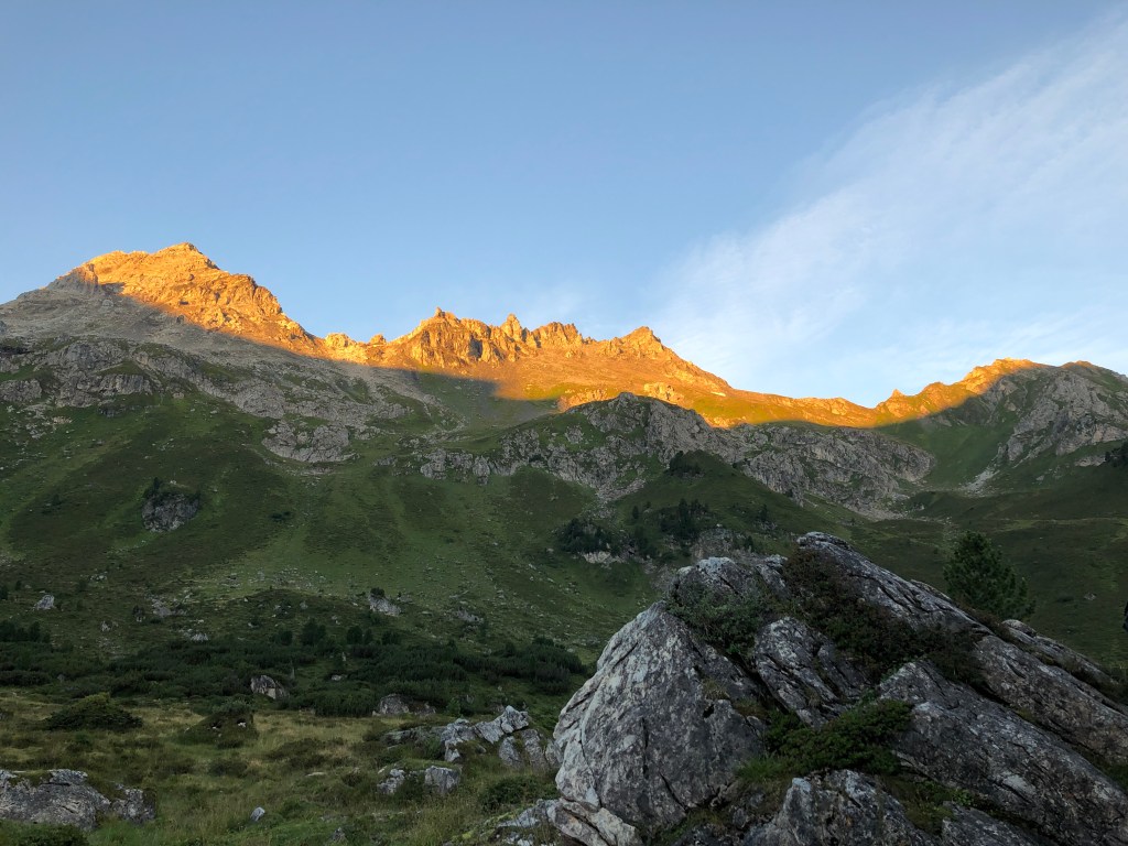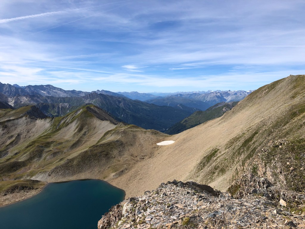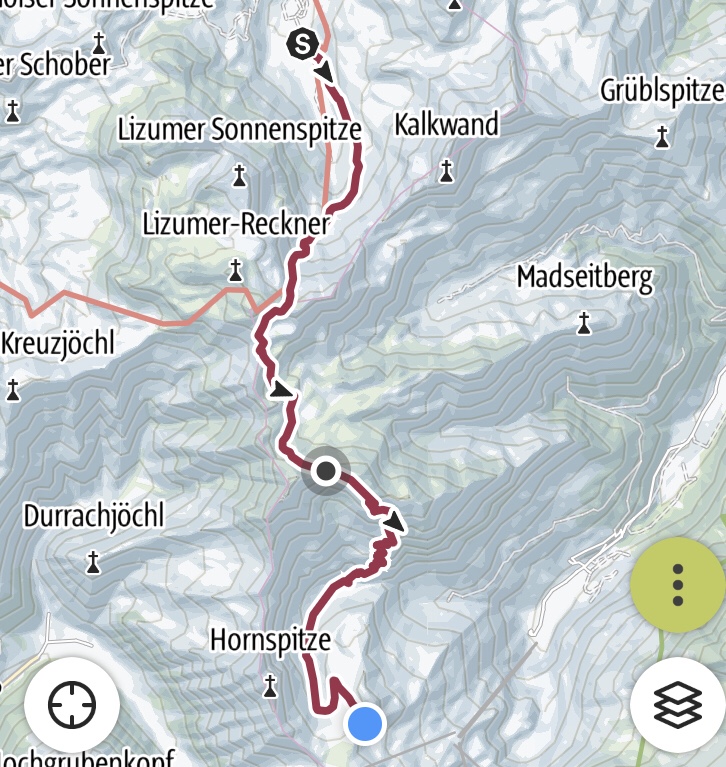 Also Backen zugekniffenen und weiter vorsichtig voran. Größtenteils hab ich jetzt den kompletten Vierradantrieb im Einsatz. 🙈Nur gut, dass mich hier keiner sieht. Allerdings beobachtet eine ganze Murmeltier Familie das Geschehen. Aber keine Chance auf Fotos. Einfach zu wenig Arme. Irgendwie schaff ich das dann aber und habe den Gipfel vom Zinseler quasi halb umrundet. 💪 Und den Weg auf der Rückseite hab ich auch gefunden! Rauf mag ich jetzt nicht mehr.